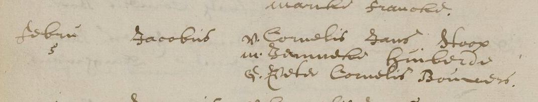 Ik heb alleen een doopinschrijving voor Cornelis en Jacobus kunnen vinden als kinderen van Cornelis Janse Stoop en Anna Huijberde. Zij moeten dus voor 1688 getrouwd zijn, maar hoe ver daarvoor? Als dit echtpaar meer kinderen heeft gehad is te verwachten dat tussen die kinderen ook een Joannes/Joanna en Hubertus/Huberta heeft gezeten.